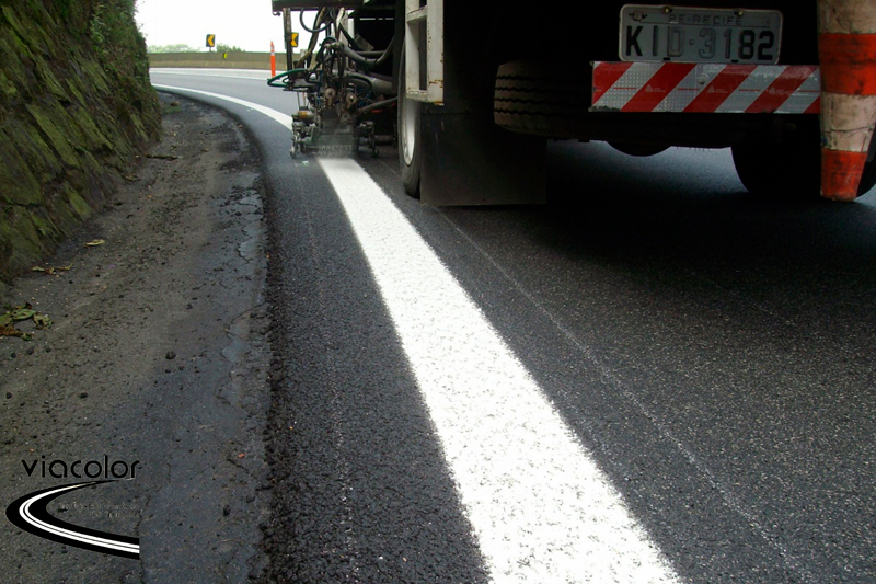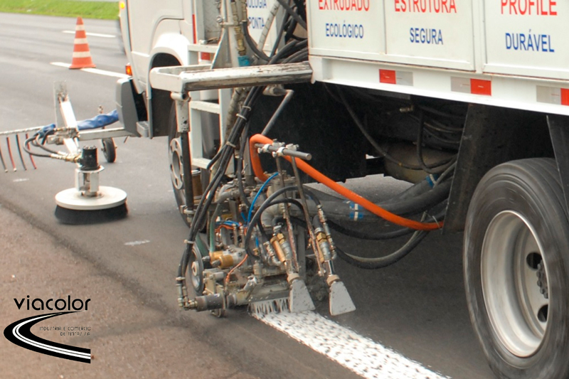 VIACOLOR PLÁSTICO A FRIO BICOMPONENTE ESTRUTURA é formulado com resinas reativas à base de Metilmetacrilato e Agente Acelerador/Endurecedor, que proporciona uma aplicação a frio por equipamento dispersor – manual ou mecânico, cuja cura se dá por reação química tridimensional. É altamente indicado para demarcações viárias em faixas de eixo e bordo, zebrados, setas e faixas de travessia de pedestres em rodovias e vias urbanas. Pode ser aplicado no formato manual com equipamento de dispersão “Plastomarker” e mecânico, formando relevos como a superfície do planeta, com morros e vales, onde a água percola pelos vales formados pela aplicação. A aplicação tipo Estrutura é normatizada pela ABNT através da Norma NBR 15.870.