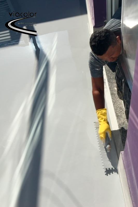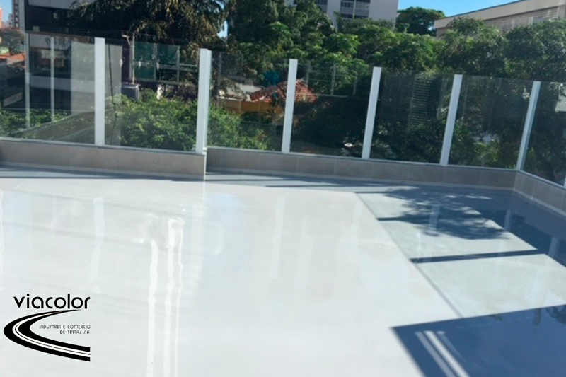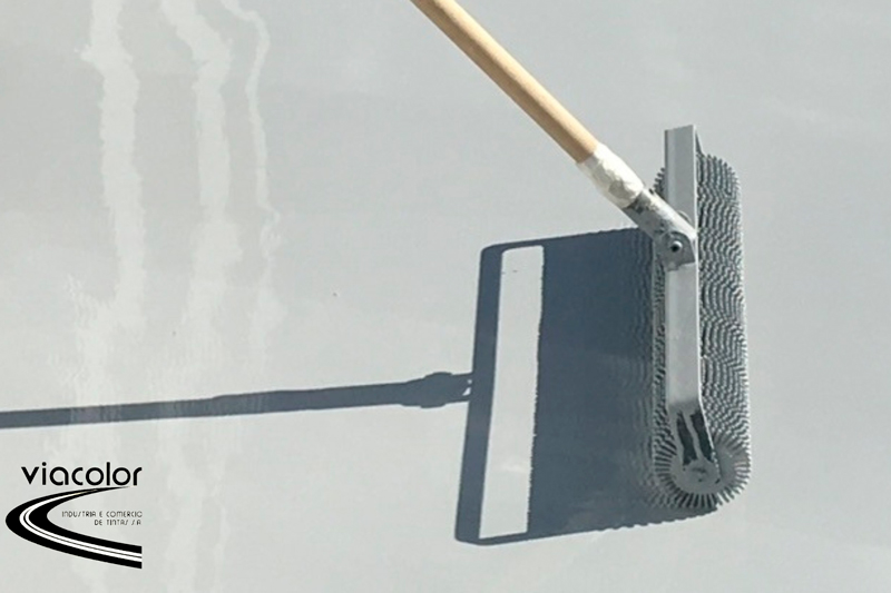 O sistema de REVESTIMENTO EPÓXI AUTONIVELANTE VIACOLOR é formulado em dois componentes e curado por processo químico com Poliamina. Proporciona um acabamento rígido com proteção de fácil manutenção e limpeza, com excelente resistência a abrasão e impacto, grande dureza e ótima resistência química. É indicado para uso em locais nos quais sejam necessários acabamento liso, ausência de emendas, impermeável e com boa resistência a manchas. O revestimento proporciona um acabamento extremamente rígido com proteção. Excelente resistência à abrasão e impacto como também ótima resistência química. O revestimento é utilizado como acabamento de alta espessura para sistemas de revestimento de pisos em instalações industriais como fábricas de bebidas, eletrônicos, ambientes hospitalares (onde seja necessário a confecção de pisos sem juntas para fácil limpeza), estações de energia, água, esgoto e locais de alto tráfego, locais de manuseio de alimentos, entre outros. Também é aplicável para indústrias farmacêuticas, depósitos e outros locais, sob consulta técnica. O REVESTIMENTO EPÓXI AUTONIVELANETE VIACOLOR é fornecido em kits compostos por Componente A – Revestimento e Componente B – Agente de Cura. O Revestimento Epóxi Viacolor é produzido na versão sem Compostos Orgânicos Voláteis (VOC). Os sistemas indicados de aplicação têm as espessuras de: Primer Epóxi Selador Viacolor (40 a 60 micra), demão Intermediária de Revestimento Epóxi Viacolor conforme estado do piso, segunda demão – camada acabamento de Revestimento Epóxi a Rolo Viacolor (camada de 350 micra a 1 mm). O intervalo entre demãos é de no mínimo de 12 e máximo de 18 horas (caso exceda, deve-se quebrar o brilho com lixa apropriada). Recomenda-se a utilização de Solvente para Limpeza Viacolor para equipamentos e respingos.