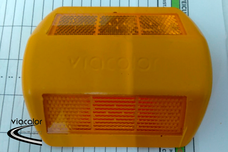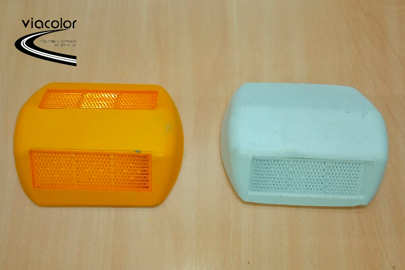 As TACHAS DE POLIÉSTER SEM PINO 30 VIACOLOR são fabricadas em resina poliéster especial, com adição de pigmentos resistentes ao intemperismo, preservando a cor original durante toda a vida útil do elemento. Com alto controle de qualidade e a utilização de matérias primas puras, apresentam alta resistência mecânica à compressão – superior à exigida pelas Normas, possuindo reforços internos, com base lisa que permite maior aderência à cola e melhor fixação ao pavimento, conferido maior resistência e durabilidade. As lentes prismáticas de alta refletância apresentam índices superiores aos exigidos pela Norma.